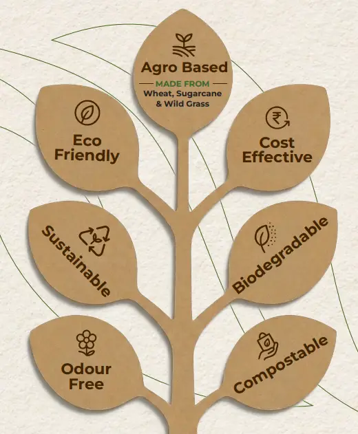 100% Agro-Based: Crafted from rapidly renewable wheat, sugarcane, and wild grass.