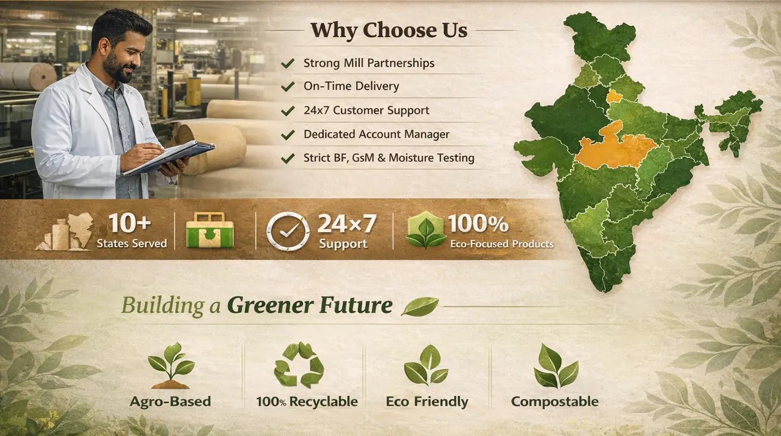 As a regional division of Balarka Papers Pvt. Ltd., we combine years of industry experience with strong manufacturing support and a deep commitment to sustainability.